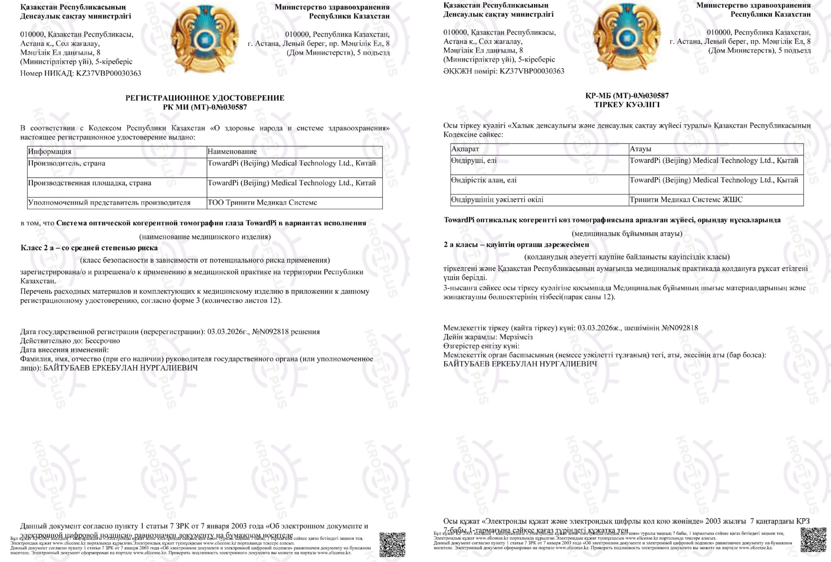 После успешного получения всех необходимых разрешительных удостоверений, это высокотехнологичное офтальмологическое оборудование готово к работе в клиниках Казахстана.